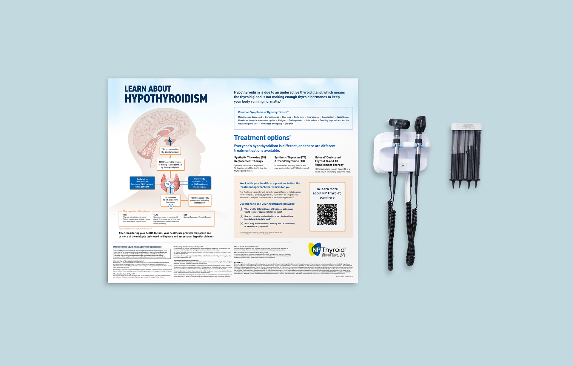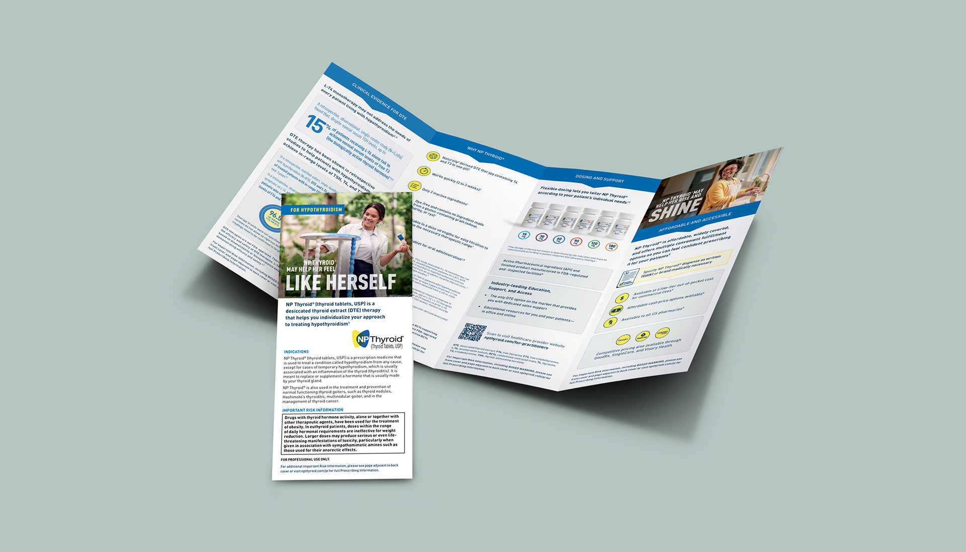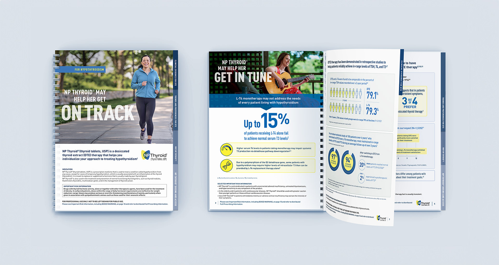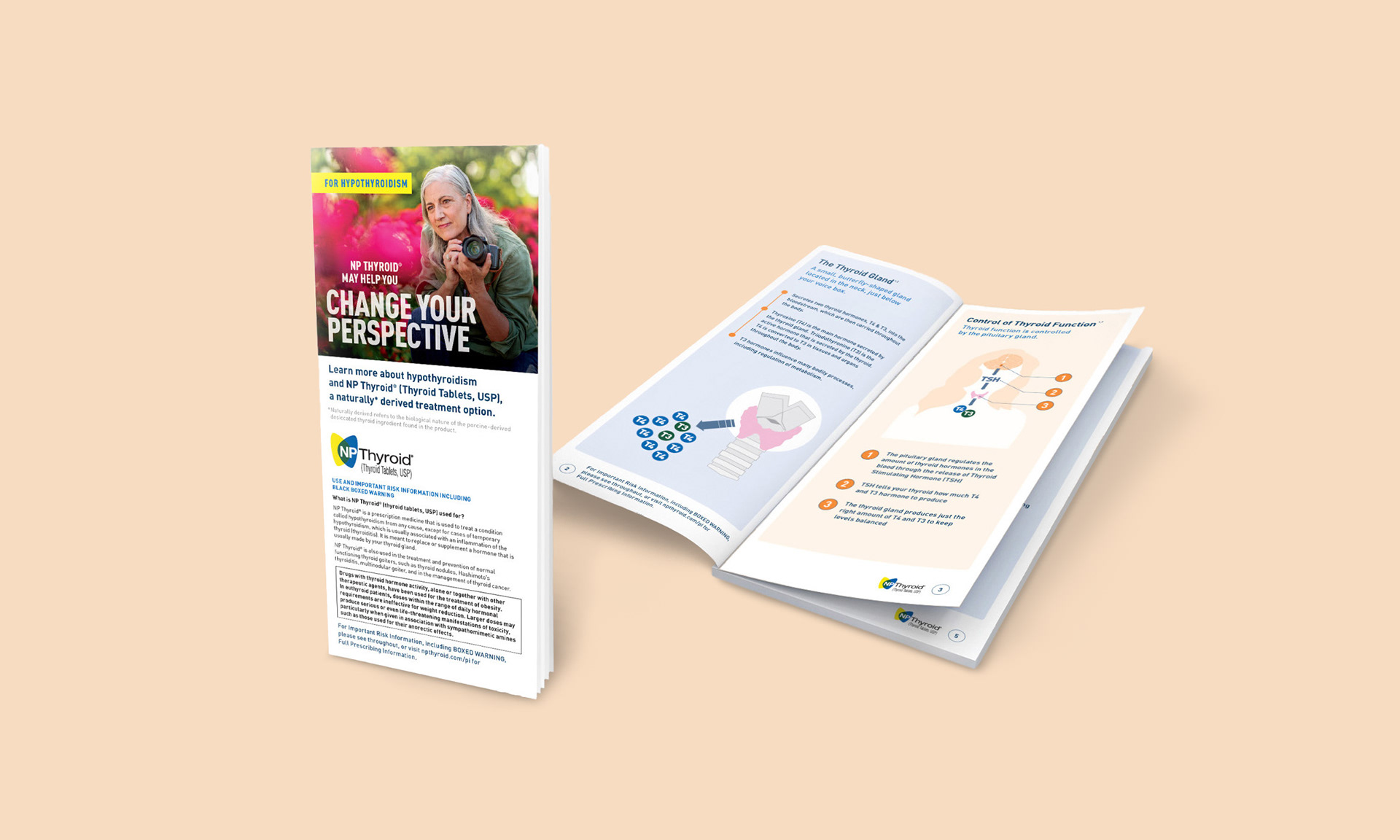 Patient tactics include a paid social campaign and various printed pieces available in offices where NP Thyroid is prescribed.