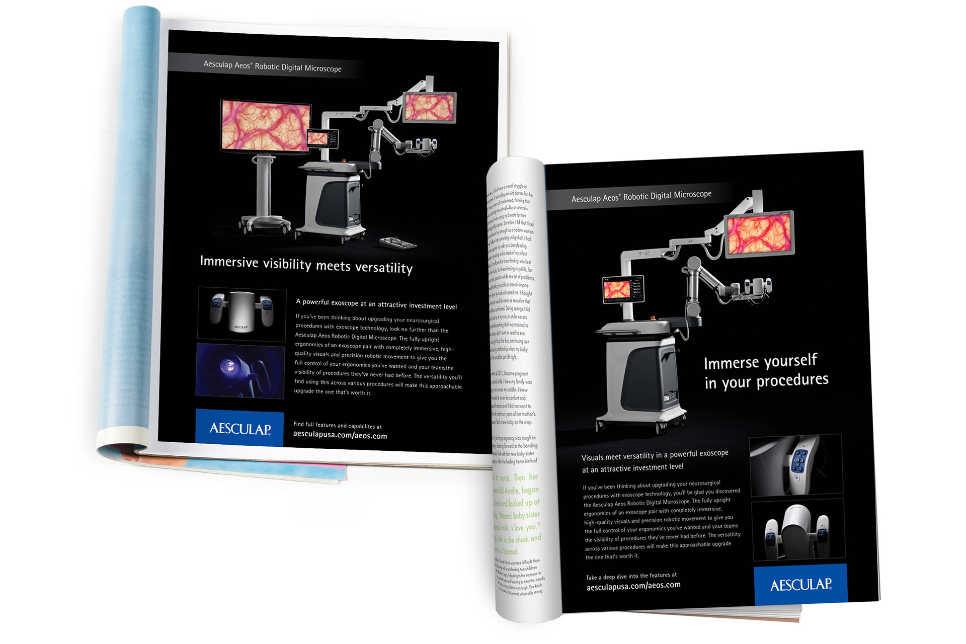 Aesculap engaged us to develop a campaign for AEOS to help generate awareness and demand through consistent, differentiated storytelling. Aesculap has an opportunity to elevate its brand, refine messaging and more effectively promote the AEOS as a platform aimed at improving patient outcomes while easing the physical burden for neurosurgeons and appeal to C-suite executives by drawing in physician talent to their hospital and local communities.
