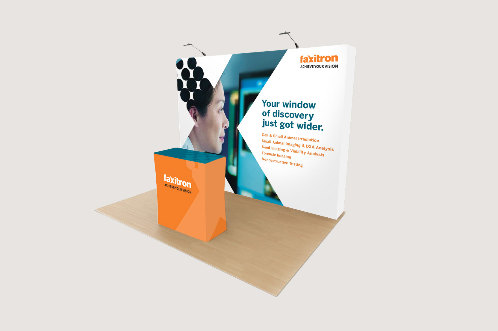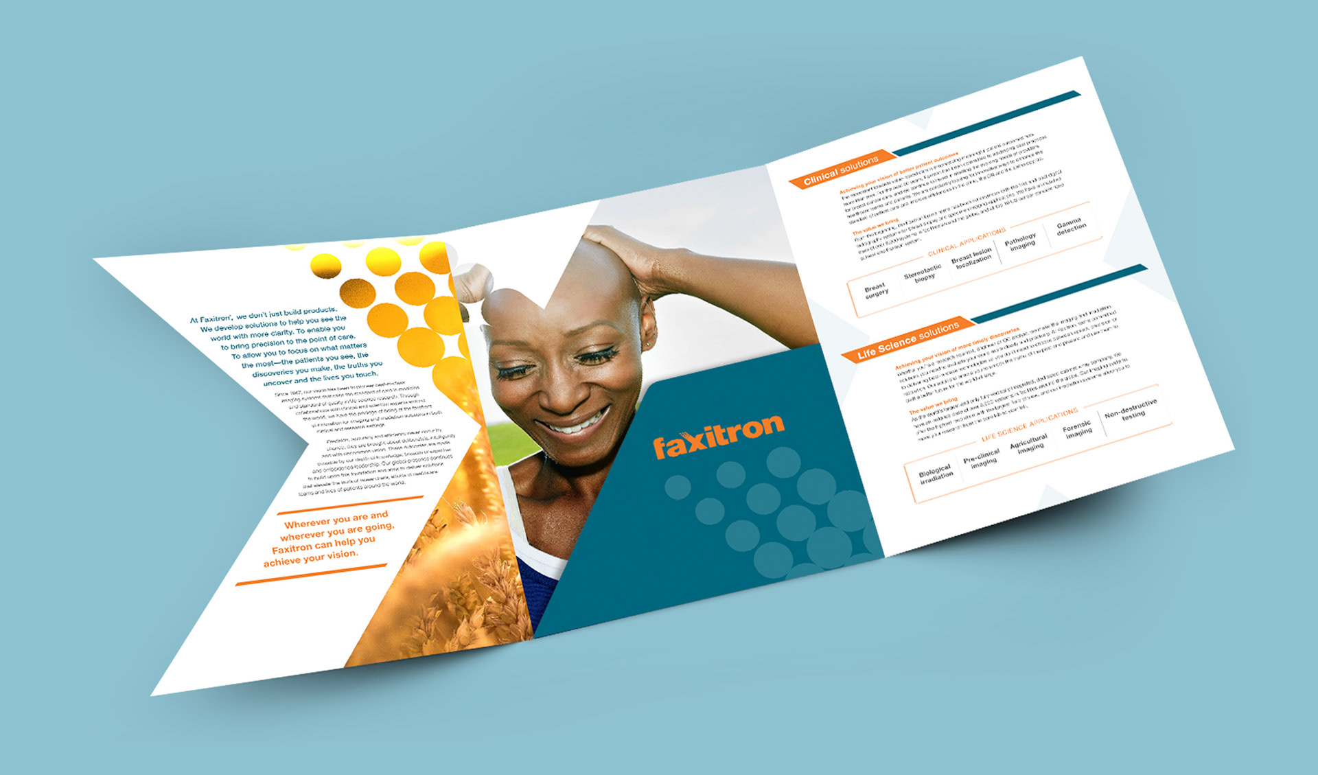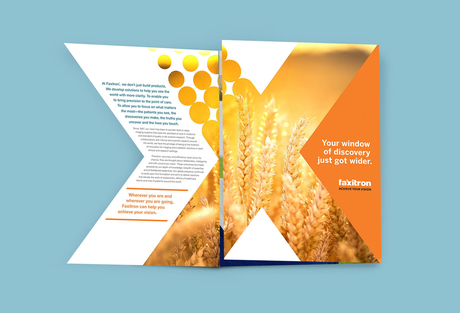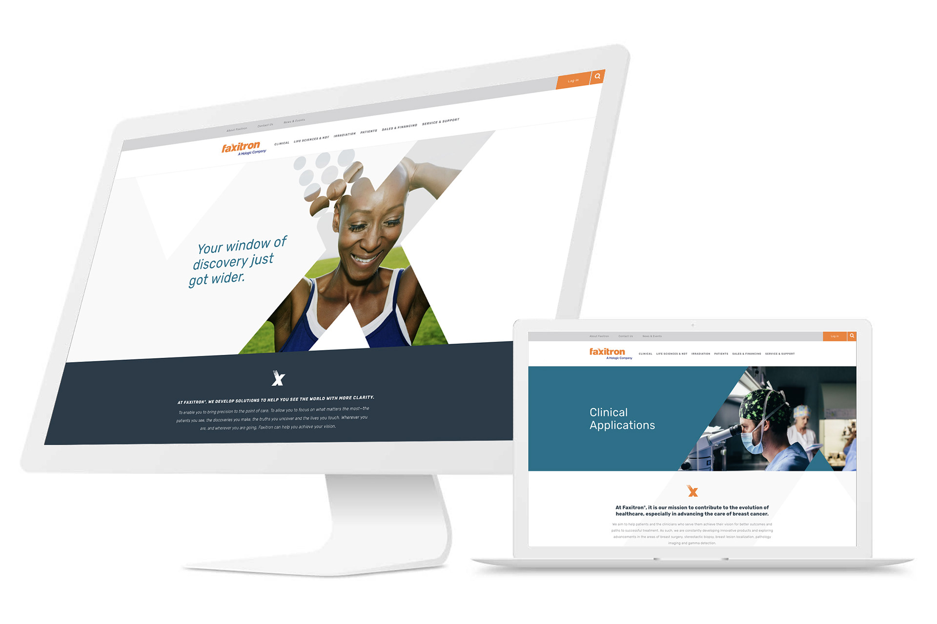 We used the unique "X" from the logo as the window that frames Faxitron's innovative approaches and achievements in the clinical and life science radiography disciplines.
